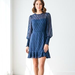 COOPER ST Blue Semi Sheer Ruffle Mini Dress Long Sleeves Lined Women’s 4