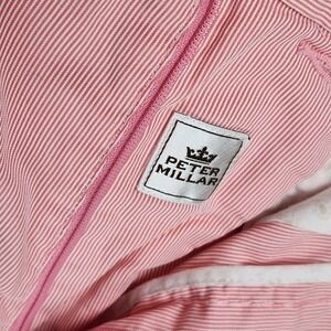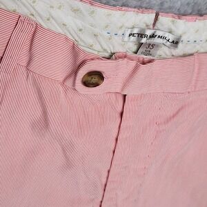 Peter Millar Mens Chino Shorts Sz 35 Pink/White Striped 8.5" Inseam Mid Rise