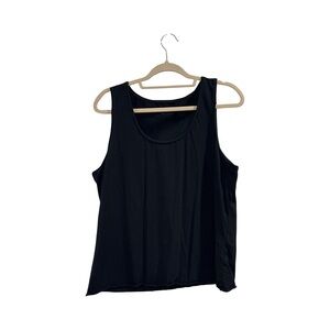 This elegant and versatile black sleeveless top for women is perfect for any occasion. It is gently used and in like-new condition, with no flaws. The top features a scoop neck and a rolled raw hem. It measures 24 inches in length and 20 inches from pit to pit.