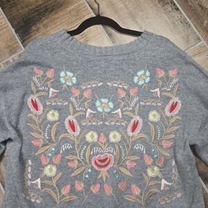 Aratta Sleek Journey Gray Floral Embroidery Crew Neck Sweater Womens Size XL