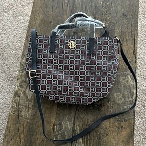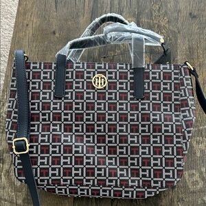 Stylish and versatile, this Tommy Hilfiger bag features a chic black and red pattern. Perfect for any occasion, it combines fashion with functionality. Brand new still wrapped and tag attached. Ready to ship.