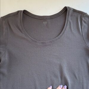 EILEEN FISHER Organic Cotton Top Sz Medium Crewneck T Shirt Cap Sleeve Gray