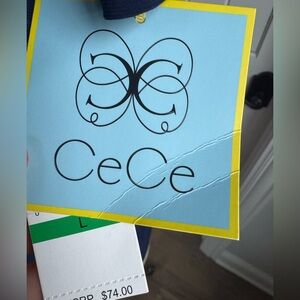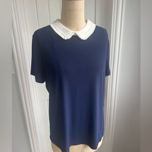 CeCe Navy Blouse with White Collar Size L