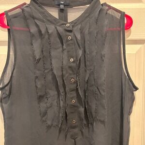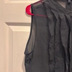 Gap Women Gray Sleeveless Sheer Button Front Ruffle Blouse Top Size L Whimsigoth