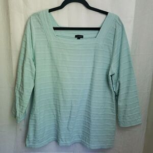 Talbots Stripe Top Square Neck 3/4 Sleeve Pullover Blouse Women's Size L FLAW
