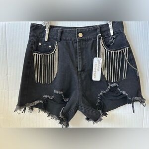 NWT CASHMERE & CHAMPAGNE DIAMOND TASSELS RIPPED DENIM SHORTS Sz. S