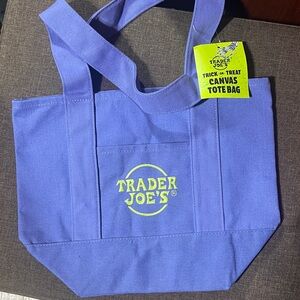 Stylish and compact, the Trader Joe's Purple Mini Tote Bag is perfect for everyday use. Its vibrant purple color adds a pop of color to any outfit. Ideal for carrying essentials with ease.