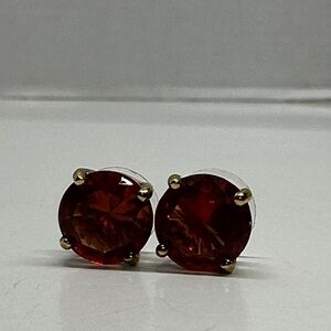 Elegant stud earrings with a sparkling pink stone and set in a gold-tone frame.