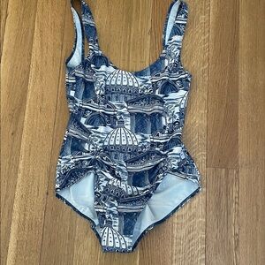 REFORMATION Topanga One Piece Blue and White Patterned Swimsuit small