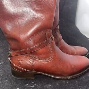 FRYE 76976 Lindsay Plate Brown/Red Leather Knee High Boots Sz 6B