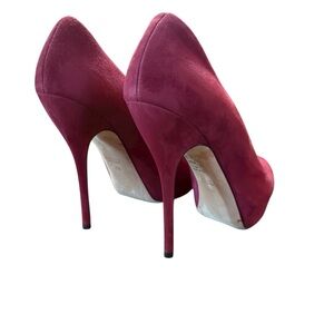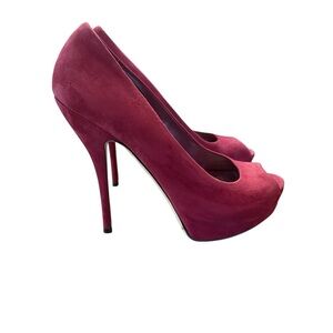 Gucci Suede Peep Toe Platform Pumps Burgundy Stiletto Heel EU 37.5 US 7.5