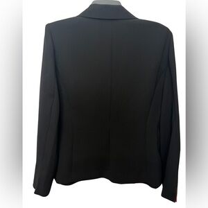 Beautiful like new, open front business blazer jacket. Perfect addition to any top. Office attire, classy yet elegant and makes a statement with the pop of red. Has shoulder pads. Approximately measuring 20.5in pit to pit, but open front. 25in length. 100% polyester. Lined