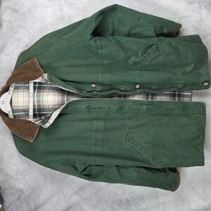 St. John's Bay Reversible Barn Jacket Green Plaid Corduroy Collar ?Medium?