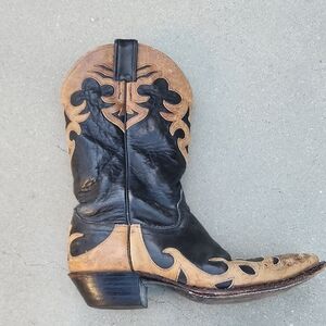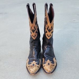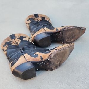 Justin Boots Women’s 8B Black Tan Western Cowboy Boots Flame Stitch