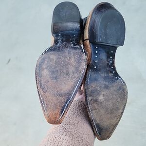 High-quality leather with great patina. In very good pre-owned condition with normal wear from light use. No holes, no peeling, and soles still have plenty of life.