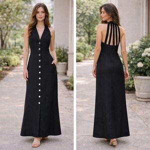 Hot Miami Styles (fabric tag reads Flama) black rhinestone jumpsuit.