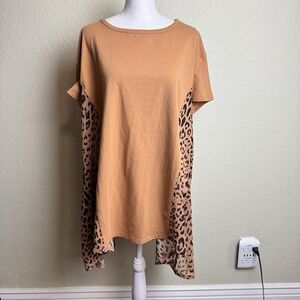 American City Wear Women's Top Tunic Short Sleeve NWT Pink Animal Print Size L Faux Gold Necklace