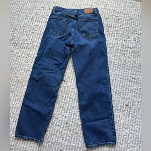 These are Levi’s® Premium jeans with a slouchy, loose fit and a straight leg. They’re cut from non-stretch cotton denim — because dad keeps it classic. This version comes in a worn-in medium indigo wash.