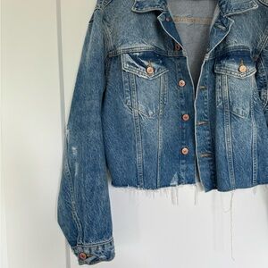 Free people cropped oversized denim jacket. Looks like Levi.