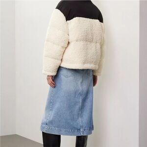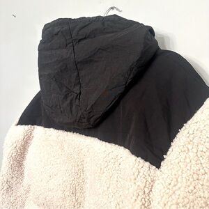 Maje Faux Shearling Padded Quilted Jacket Coat Colorblock Hoodie Sz 1 Oversized