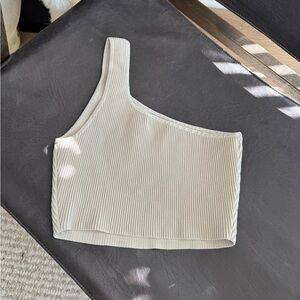 This is a cropped one-shoulder top with a tight fit and fully fashioned construction. It's made with Sculpt Knit — Babaton’s signature figure-enhancing yarn. This compressive-feel fabric holds you in all the right places to shape and sculpt your form. All year round. It's constructed using an Ottoman stitch with close distinct ribs for a structured and textural feel.