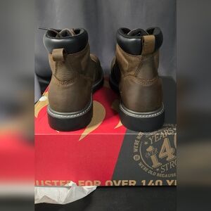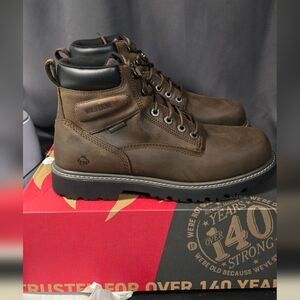 NWT. Still in box. never worn. Mens 6" Dark brown, Steel toe rugged Wolverine leather construction boots. Comfortable fit. Size 10.5