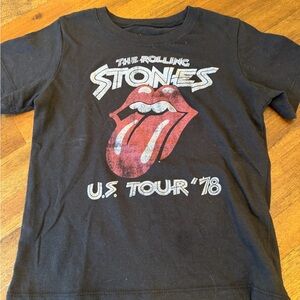 Black tee with iconic Rolling Stones tongue graphic. Bold red and white design. Non smoking household.