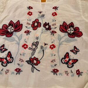 Embroidered peplum Zara top women M ruffle butterfly cotton silk