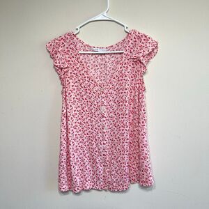 The Nine by Hatch Pink Floral Maternity Shirt Medium Short Sleeve