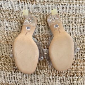 transparent, high heels, pumps, heeled sandals, thick heel, thick stiletto, 4" heels, evening, cocktail, fancy, wedding guest, dressy, prom, party, black tie, formal, special occasion, bachelorette, bridesmaid, bridal, bride-to-be, bride, engagement, Jackie, Dolly, Goldie, Colette, Miso, Valerie, Jenn, feminine, romantic, girly, date night, going out, club, sexy, summer, vacation, summery, resort, resortwear, honeymoon, poolside, pool party, clear, lucite, preppy, Barbie, Barbiecore, shimmery, champagne, platinum, shiny, plastic, neutral, delicate, dainty, flare heel, curved heel, slides, PVC,