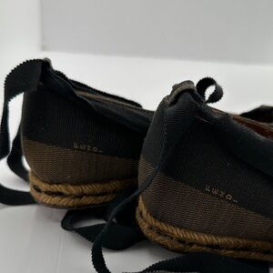 FENDI Black /Brown Ballerina Pequin Espadrilles- Size 5