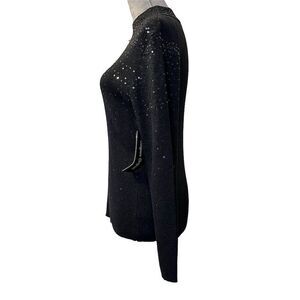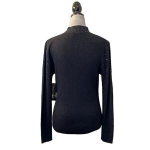 Designers Originals Women's Black Sequin Mock Neck Pullover Sweater L Goth