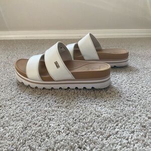 White and Tan Women's reef cushioned platform sandals | size 6