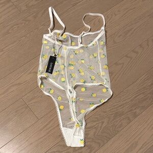 Small Lounge White sheer body suit with lemon embroidered design 🍋