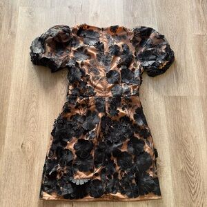 elliatt rosalind black floral applique 3d puff sleeve mini dress size medium NEW