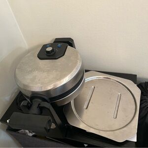 Includes: waffle maker, drip tray, and the instruction/recipe booklet shown in photos. Item is cleaned and ready to use. Photos are of the actual item you’ll receive.