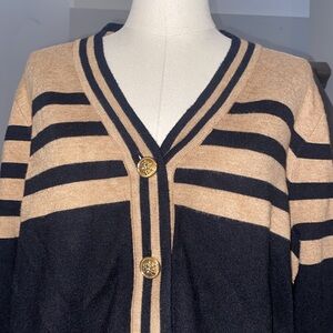 NWT Cyrus classic style button cardigan size XL beige and black gold accent buttons