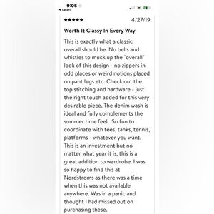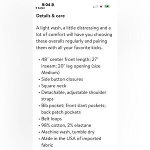 Stylish light blue denim overalls. Features adjustable straps and front pocket. See listing photos for more details.