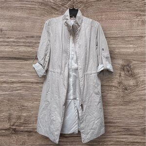 #CalvinKlein #LightGrayCoat #CinchTieWaist #RolledSleeves #ZipperedCoat #SmallCoat #CottonPolyesterBlend #ChicOuterwear #CasualCoat #WorkCoat #FashionJacket #PoshmarkFinds #LayeringPiece #SpringCoat #FallCoat