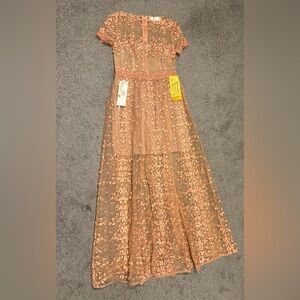 Bronx And Banco New Megan Cap Sleeve Sheer Lace Gown Size L / US 8. Measurements shown in photos.