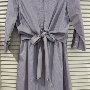 Stylish long sleeve dress with button-up front. Features a waist tie for a flattering fit. Perfect for versatile wear. Length hits at bottom of the knee. I am 5’5” tall