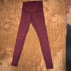 Like New Lululemon Wunder Under High-Rise 30" Maze Red Black Leggings Size 6