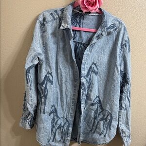 Stylish button-down shirt with horse print. Soft fabric. Perfect for casual wear.