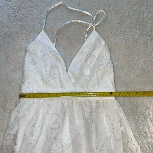 Lulu's Angelic Moment White Swiss Dot Sequin Tulle Midi Dress