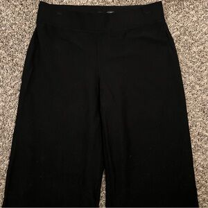 Elegant black trousers with a wide-leg design by Eileen Fisher. Versatile and chic. Viscose nylon blend. Size XS. Waist is 13, inseam is 30.