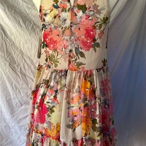 Bleecker 126 Watercolor Floral Chiffon High Neck Baby Doll Dress. Size small