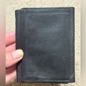 Basic Genuine Cowhide Tri-Fold Wallet with ID Window, multiple card slots.