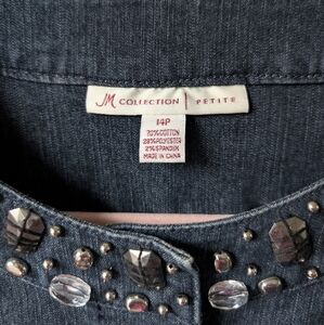JM Collection Embellished Dark Wash Denim Jacket Size 14 Petite