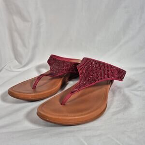 Fitflop Banda Glitz Thong Red Brown Sandal Shoes Women's Size 8