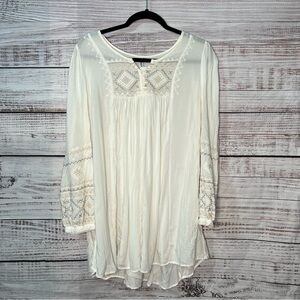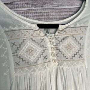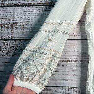 Monoreno Large Boho Shirt White Embroidered Long Sleeve Top